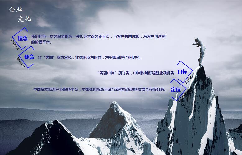 公司致力于為旅游景區運營、旅游地產開發、區域綜合開發、城市營銷等項目提供規劃咨詢服務。以強大專業的市場調研為支撐,針對當前旅游規劃市場的咨詢、策劃、規劃、營銷、運營等概念混淆的現狀,公司擬從咨詢入手,形成“咨詢+設計”獨特的業務模式,提供旅游、地產、區域綜合開發等項目綜合服務,包括咨詢、策劃、規劃、景觀設計、建筑設計、運營營銷等,憑借專家智慧和專業知識平臺,為客戶跨地域和細分市場下的旅游項目投資、項目綜合運營等需求提供強有力的支持。